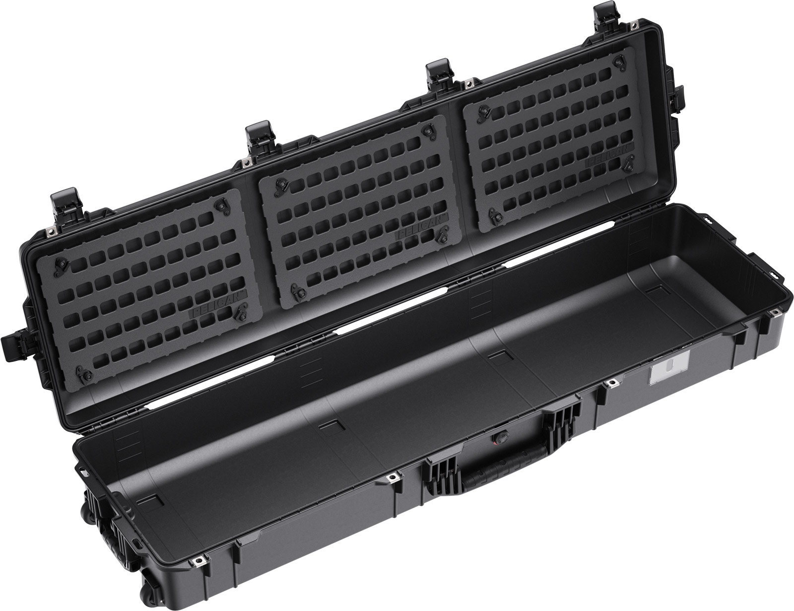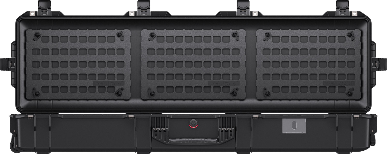 Con 12 protuberancias en la tapa, el Pelican™ Air Case 1755 puede acomodar hasta tres exclusivos paneles Pelican™ Ez-Click™ MOLLE para la organización de la tapa. Preconfigure su equipo combinando un panel MOLLE con una variedad de bolsas MOLLE y correas Velcro™ (se venden por separado). Conecte fácilmente sus paneles MOLLE configurados al interior de la tapa de su estuche y estará listo para su trabajo o aventura.